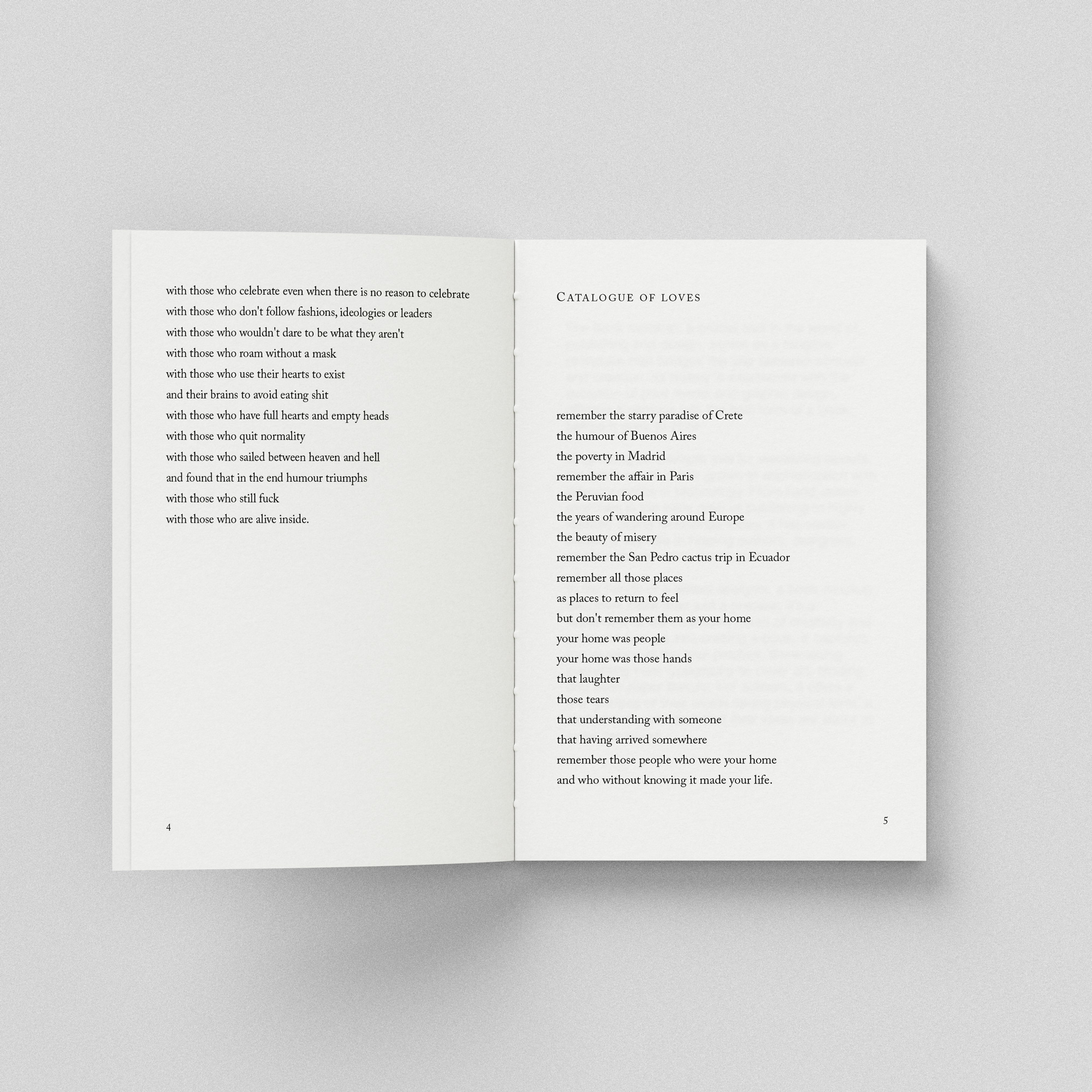 They are poems. I accumulated them in drawers for months, sometimes years. I thought about setting them on fire. But now I take them out and organise them. I think they talk about burning. About setting fire to masks. About cheating the norm. About being oneself and seeing others. About learning. About being reborn. About coming out of the pit. About giving. About losing. About playing. About remembering. About feeling the path. I think these poems speak of shining again, of burning again, of not forgetting the beauty of being alive, the frenzy of existing. I think they speak of the triumph of humour and love, even if love does not always triumph. They are poems and little poems that speak of beautiful things and ugly things.