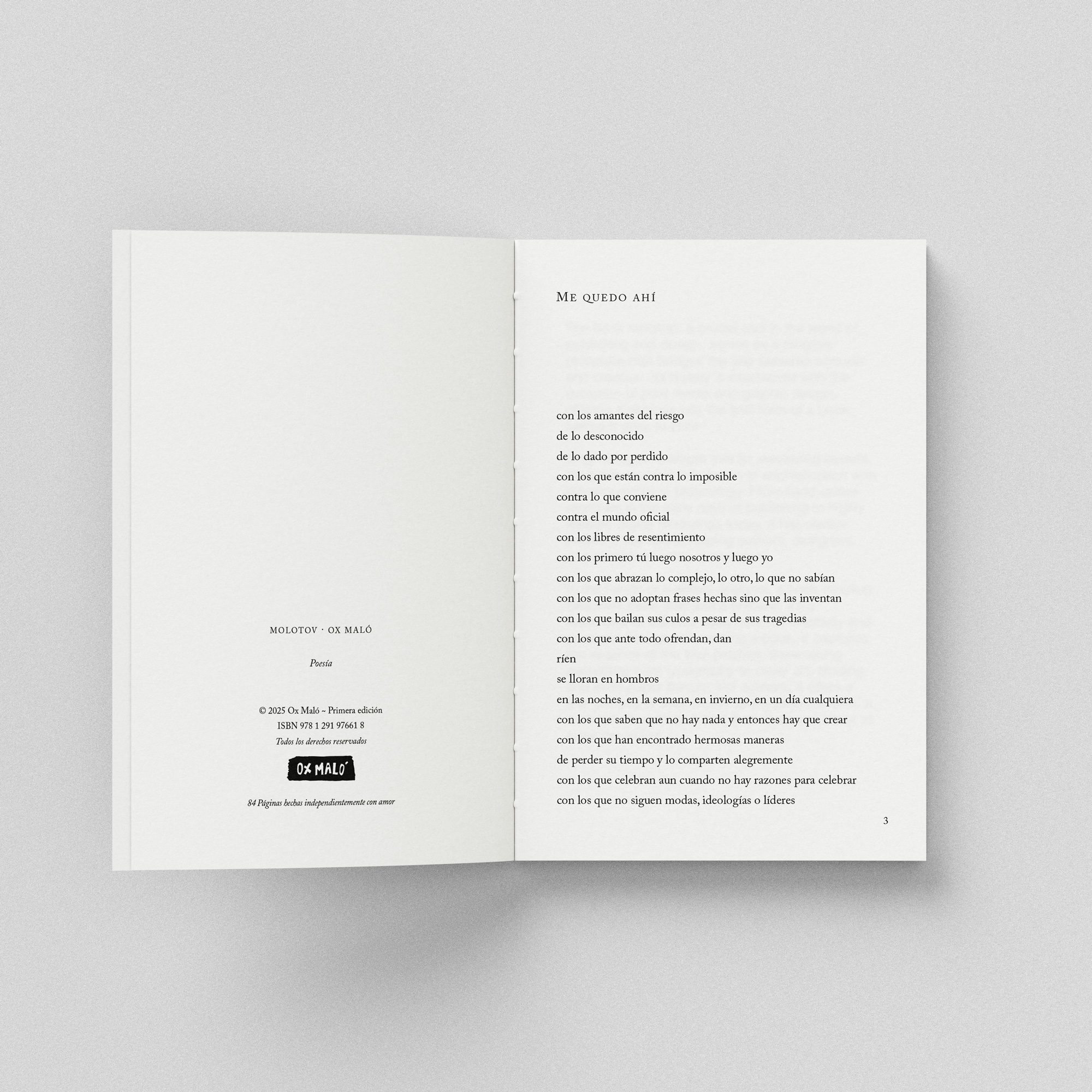 Molotov!, Poesía. ISBN 978 1 291 97661 8, © 2025, 5.83 x 8.27 in / 148 mm x 210 mm, Español, Primera Edición, 84 páginas hechas independientemente con amor – PAPERBACK